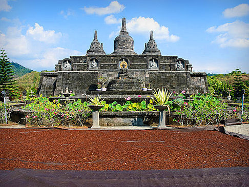 Über eine Treppe gelangt man zu einem Steintor, hinter dem sich ein hübscher Lotusteich und die Gebetsräume des Banjar Brahma Arama Vihara befinden. Betreten werden dürfen diese nur ohne Schuhe, außerdem benötigt man einen Tempelschal, der am Eingang erhältlich ist. Von oben hat man einen herrlichen Blick über die weitläufigen grünen Hügel und Reisfelder des Umlandes.