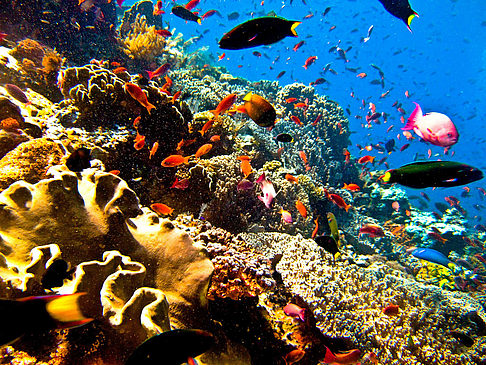 Im Südosten, am "Cave Point", gibt es beispielsweise zahlreiche Unterwasserhöhlen. Besonders interessant ist der "Eel Garden", der im Südwesten über eine steile Wand ins offene Meer führt. Vor allem bei starker Strömung hat man an dieser Stelle gute Chancen auch Großfischen zu begegnen. Das Wrack, das im Nordwesten auf Grund liegt und nur für erfahrene Taucher zu empfehlen ist, zieht nicht selten Haie und Schildkröten an.