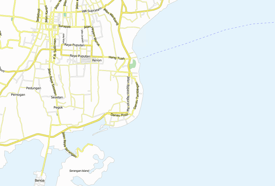 In der direkten Umgebung sind bekannte Attraktionen wie etwa Sanur, Serangan sowie Taman Budaya Art Center. Häufig betrachtet sind darüber hinaus diese Stadtpläne: Denpasar, Gitgit, Pura Besakih und Gunung Agung